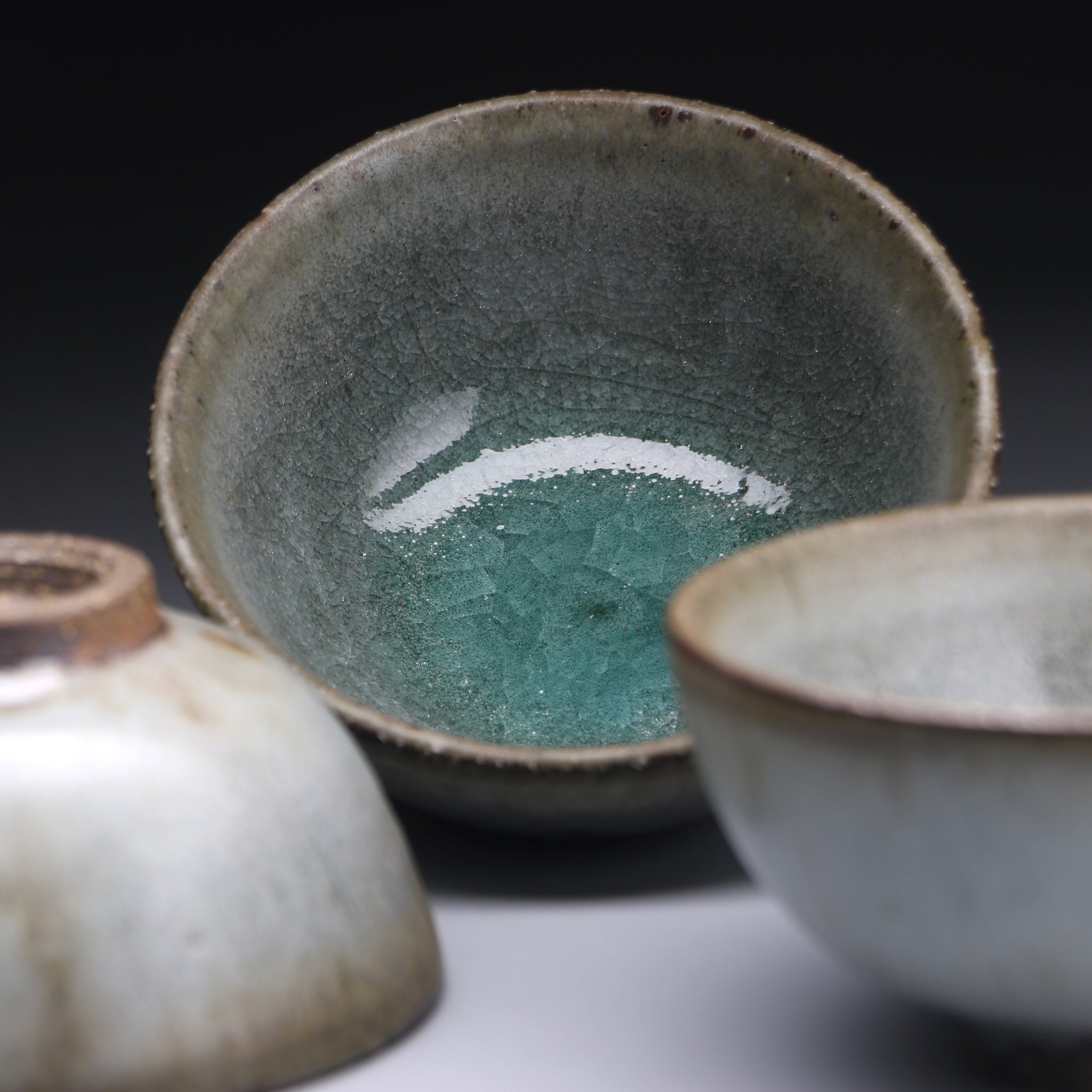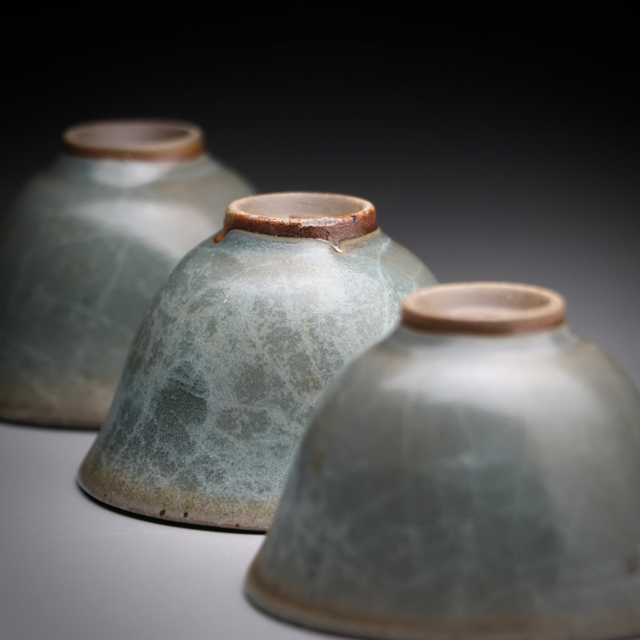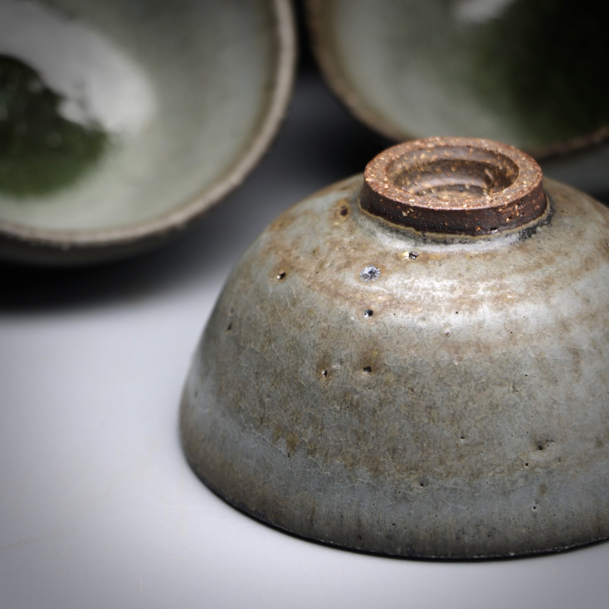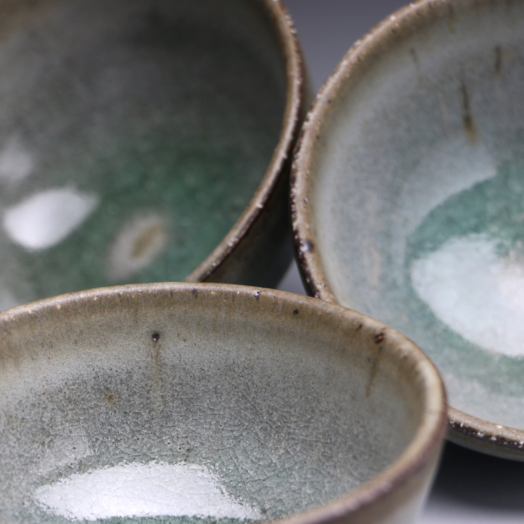 All of our teacups are individually handmade. The cups are either wood fired or glazed with our own glaze formulations from all natural materials. We never add any toxic materials to our products. Some of our clays and glazes feature locally sourced materials from the pristine mountains, streams and forests around our studio in Taiwan. Each cup is designed to be specifically used for serving tea. With this in mind we choose clays with nice tactile quality and glazes that pair well with premium teas.