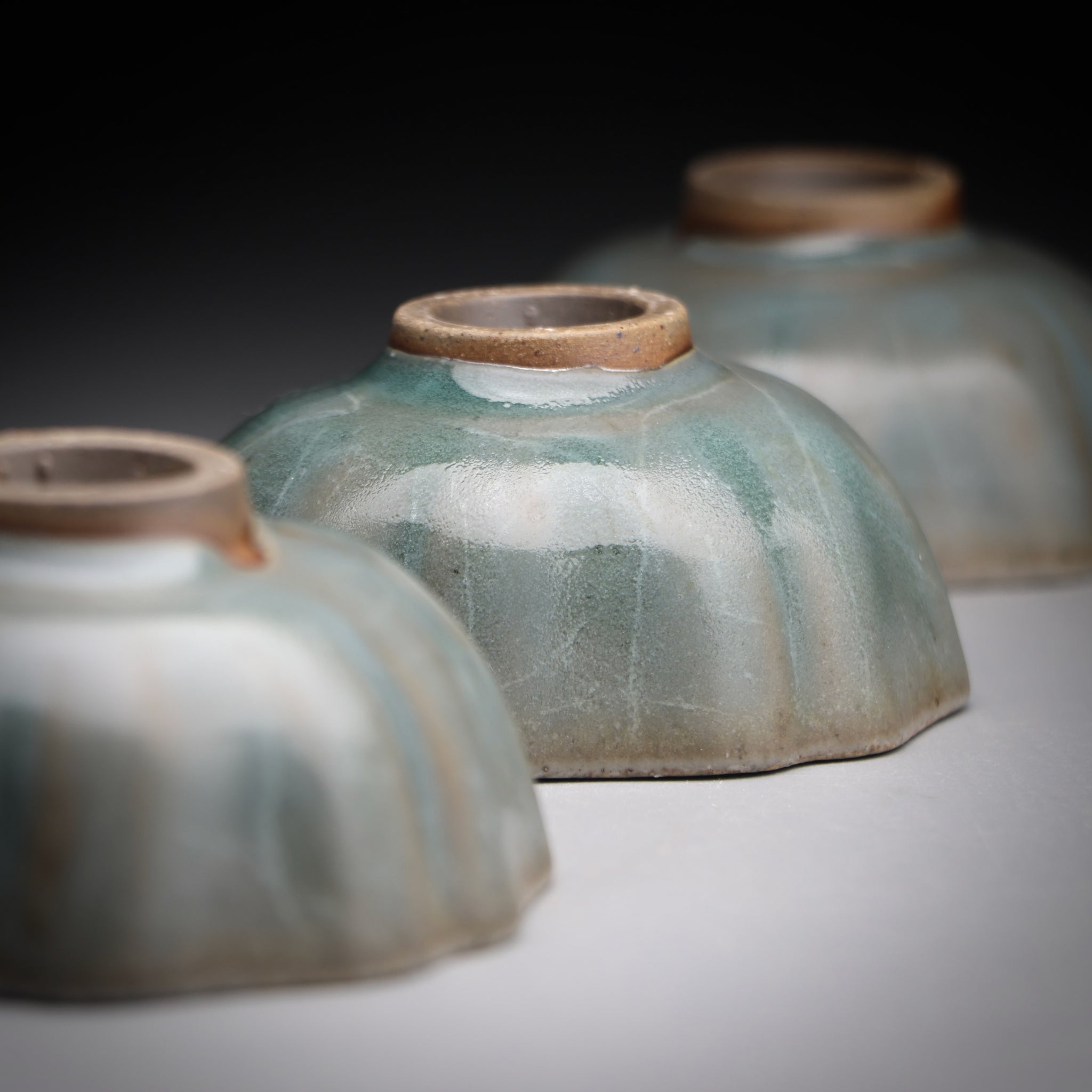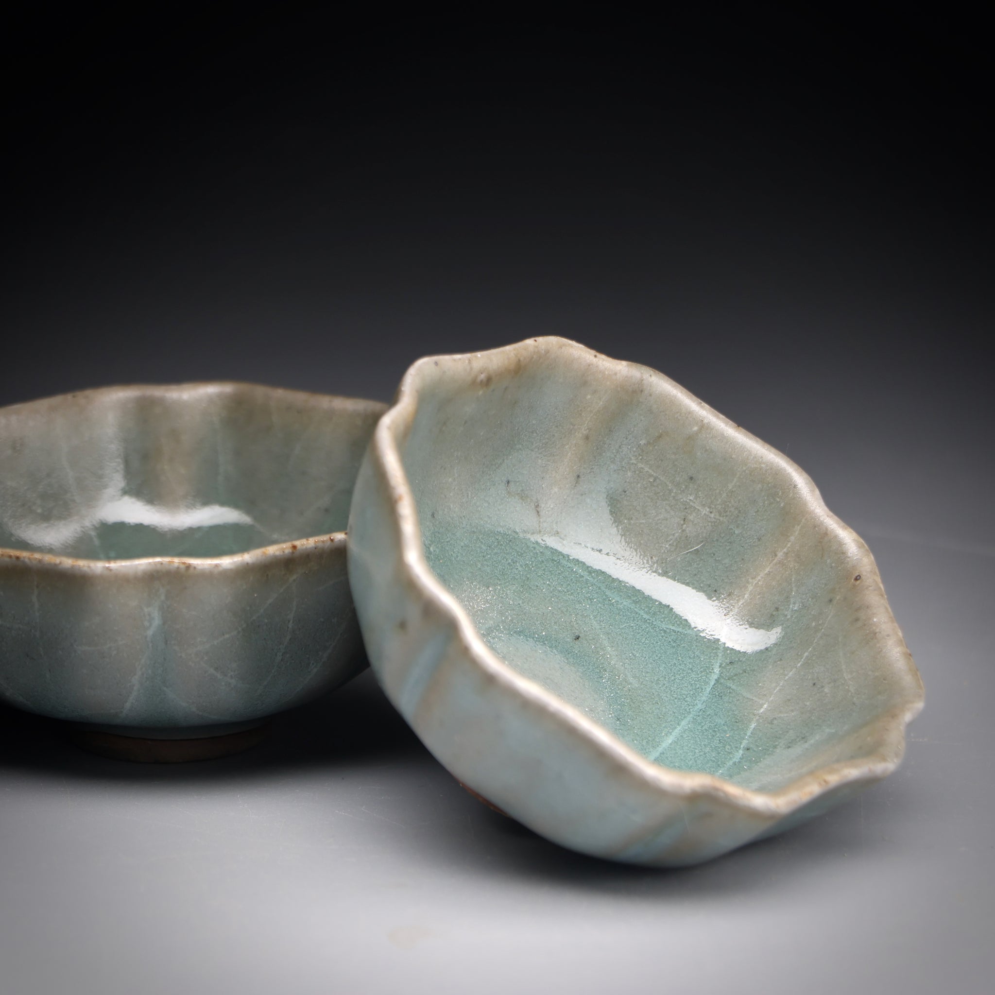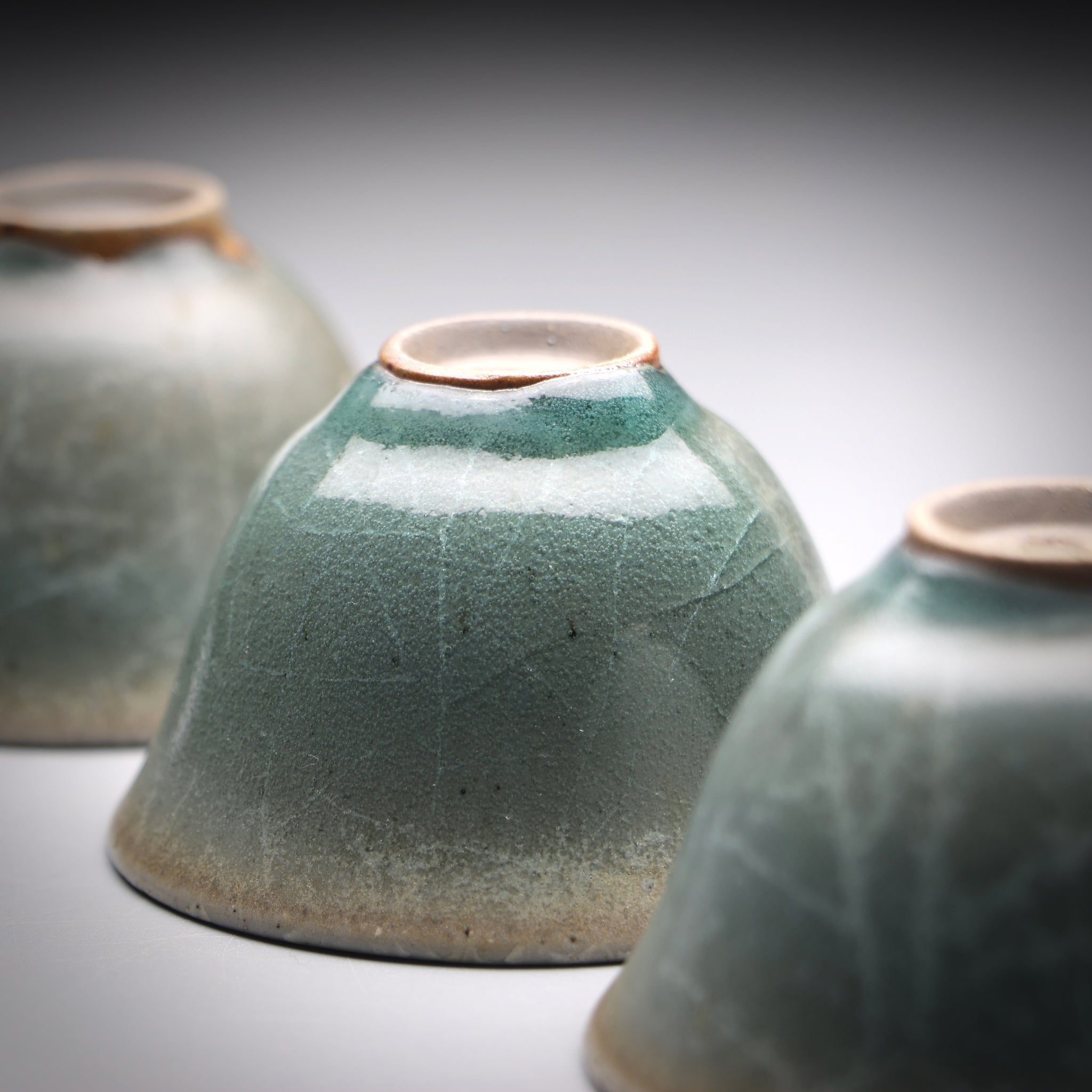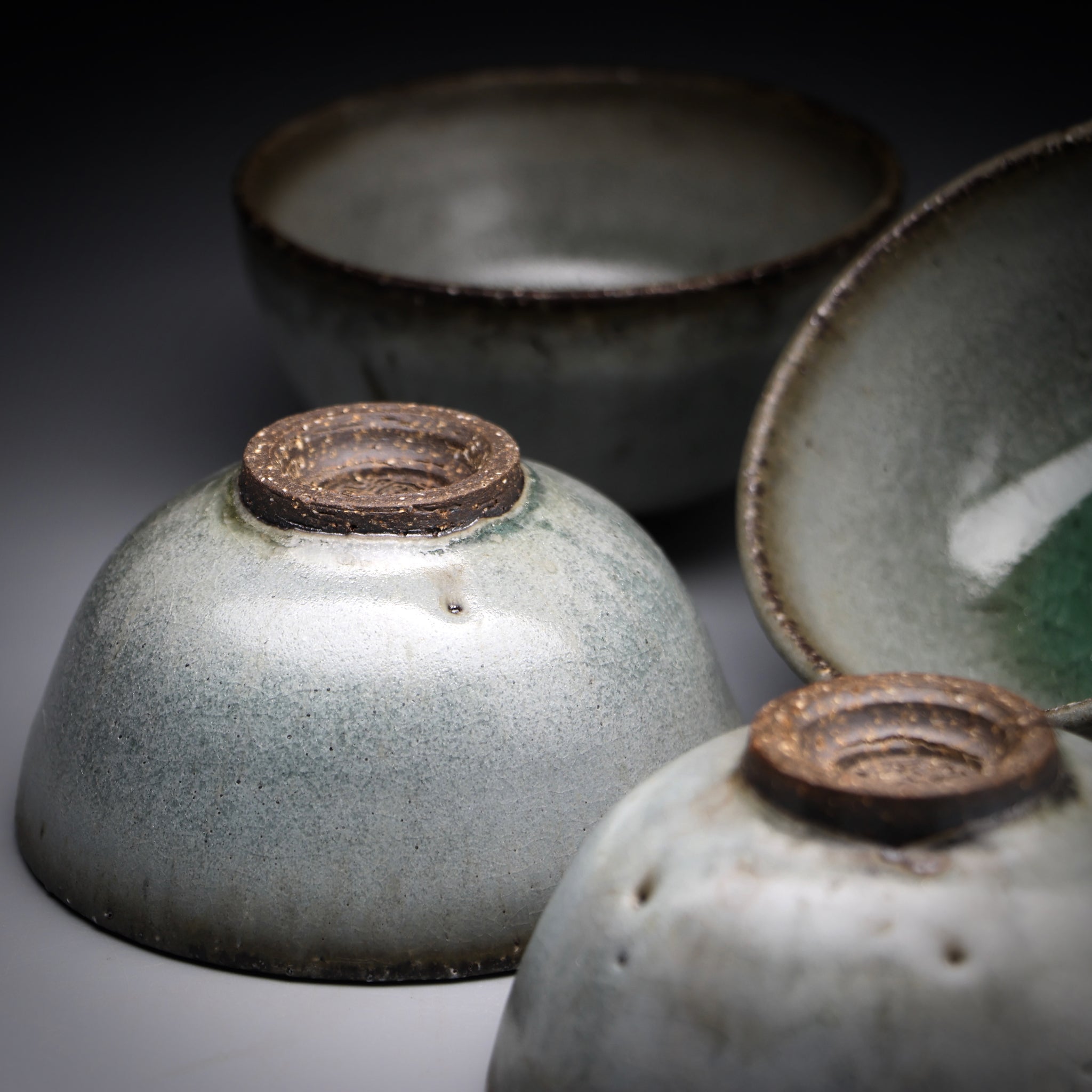 All of our teacups are individually handmade. The cups are either wood fired or glazed with our own glaze formulations from all natural materials. We never add any toxic materials to our products. Some of our clays and glazes feature locally sourced materials from the pristine mountains, streams and forests around our studio in Taiwan. Each cup is designed to be specifically used for serving tea. With this in mind we choose clays with nice tactile quality and glazes that pair well with premium teas.