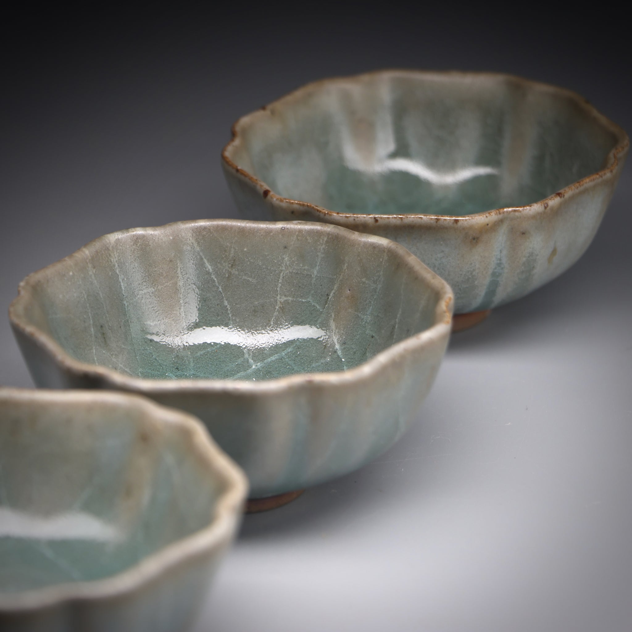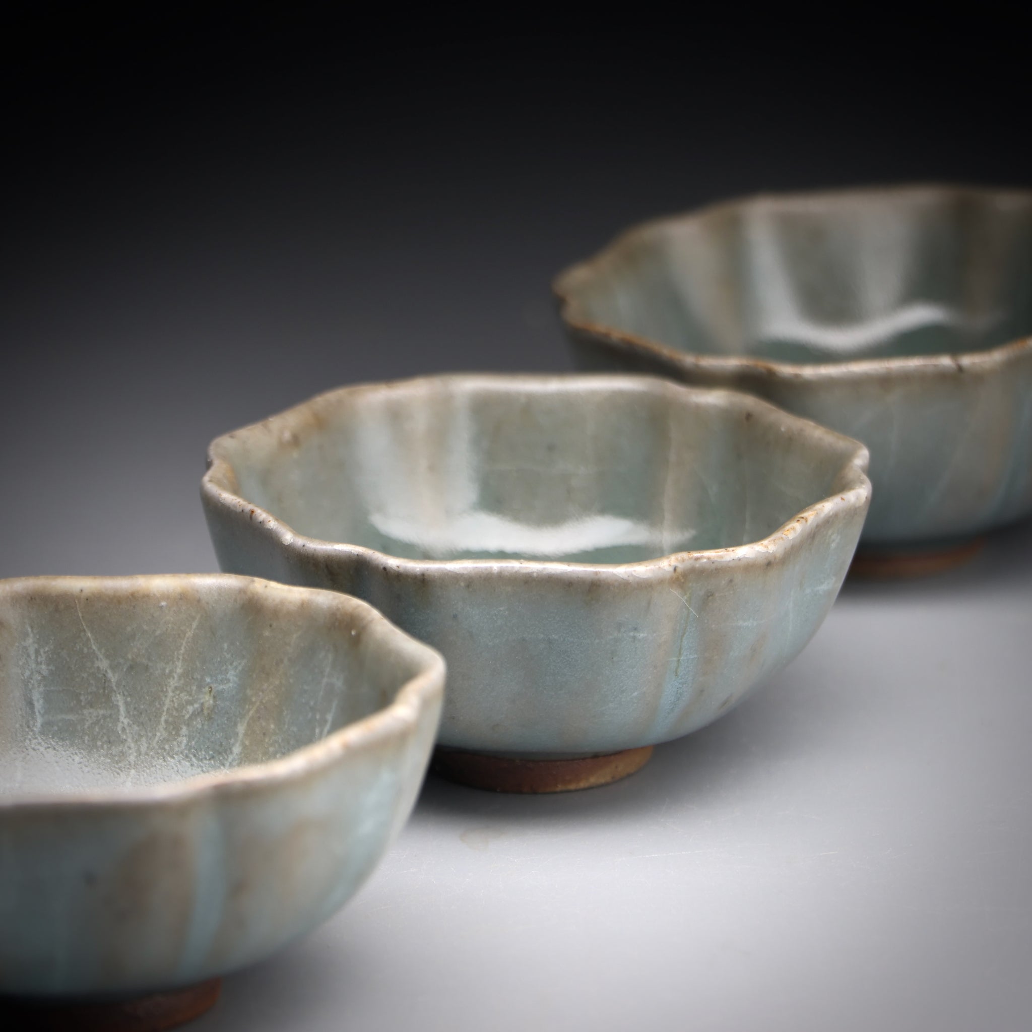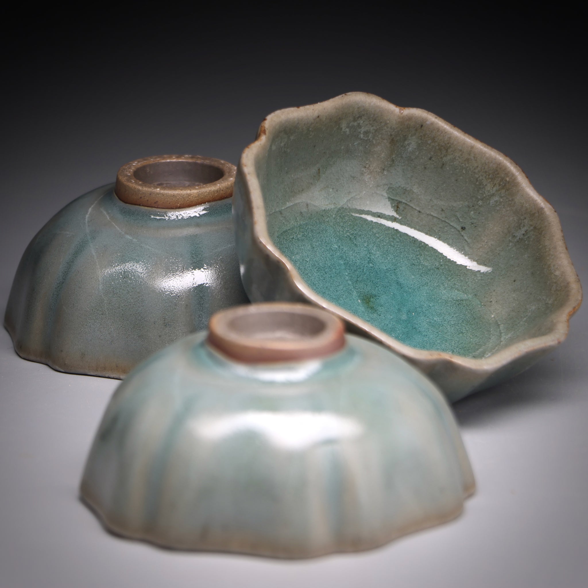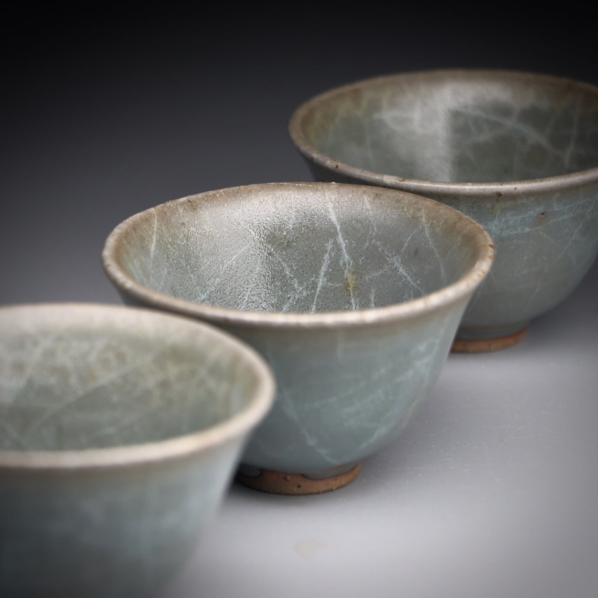 All of our teacups are individually handmade. The cups are either wood fired or glazed with our own glaze formulations from all natural materials. We never add any toxic materials to our products. Some of our clays and glazes feature locally sourced materials from the pristine mountains, streams and forests around our studio in Taiwan. Each cup is designed to be specifically used for serving tea. With this in mind we choose clays with nice tactile quality and glazes that pair well with premium teas.