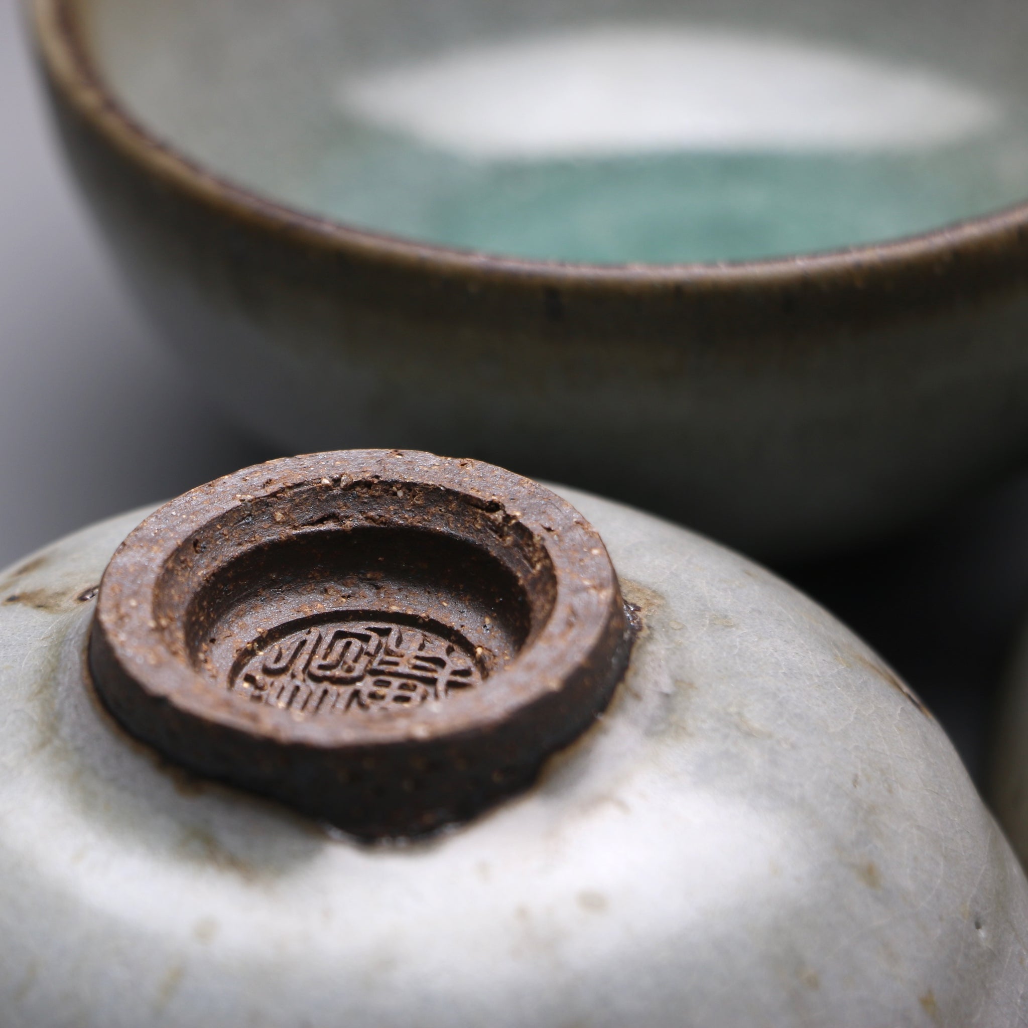 This handmade teacup set is crafted from recycled clay and finished with a soft satin-white glaze. The stone-like texture offers a comfortable grip, and the glaze gently crackles with use, allowing each cup to develop its own quiet character over time.