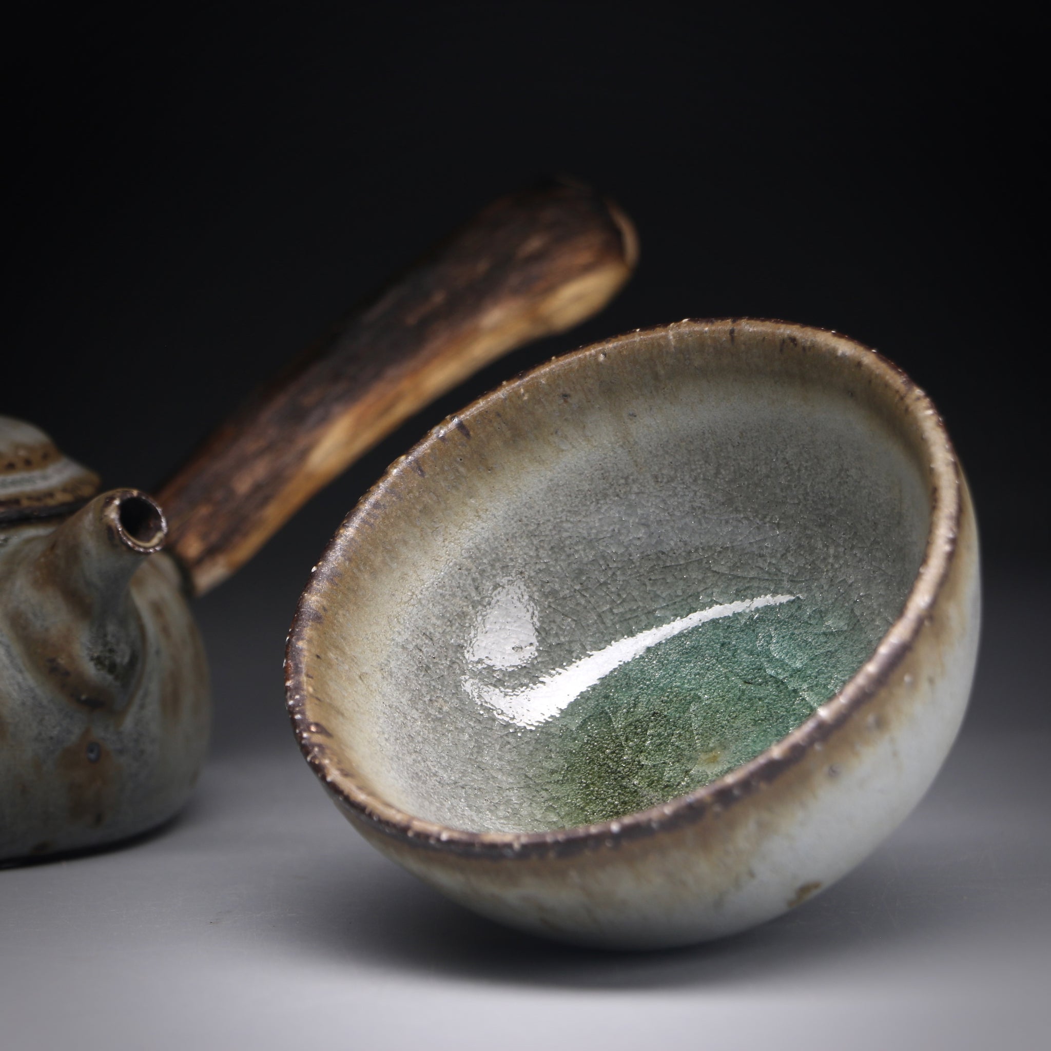 Celadon teapot wood handle LEFTY w / cup 118ml